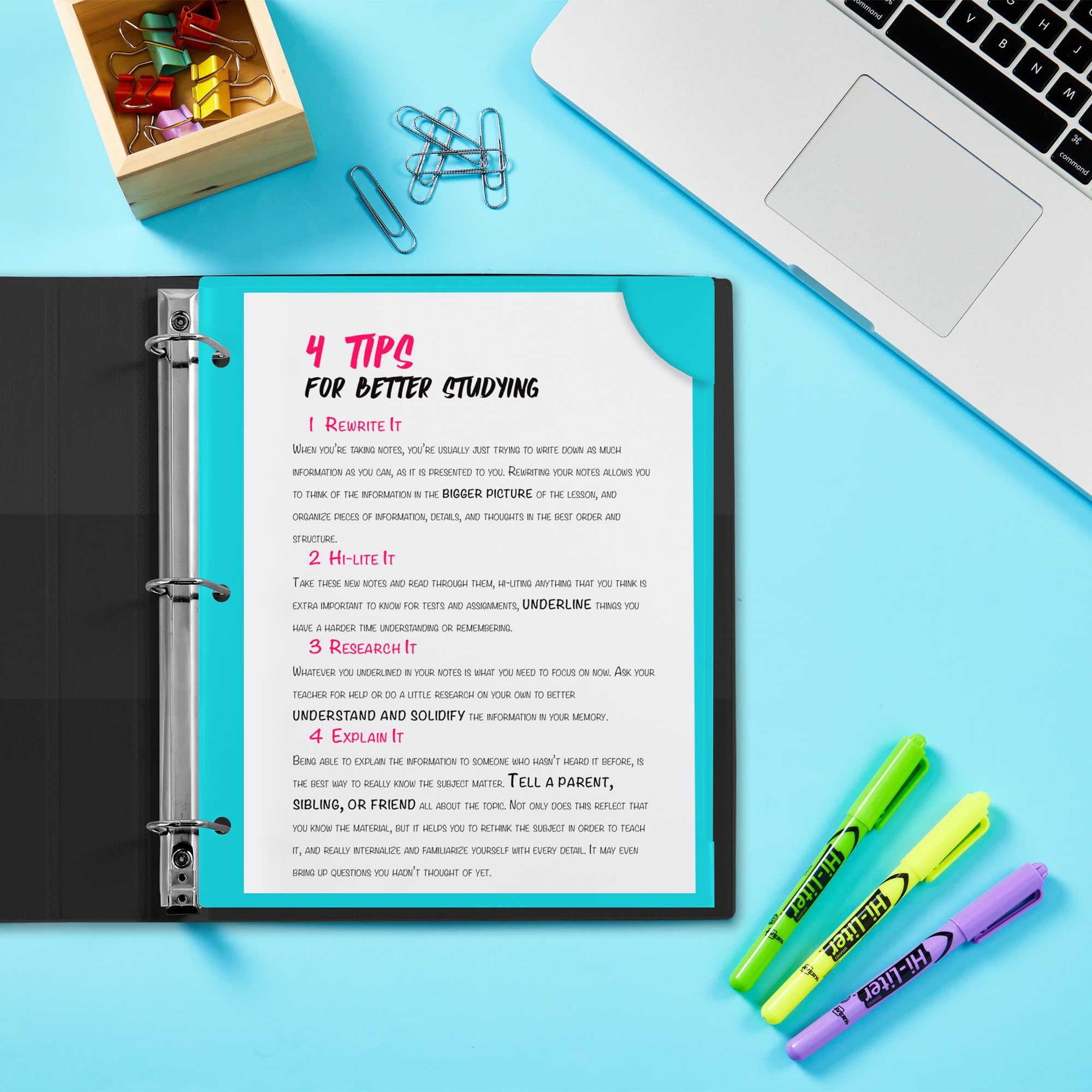 - Keep paperwork organized while on the go with lightweight yet sturdy plastic sleeves that allow for easy transportation or storage of homework, schedules, to-do list, reports and more
