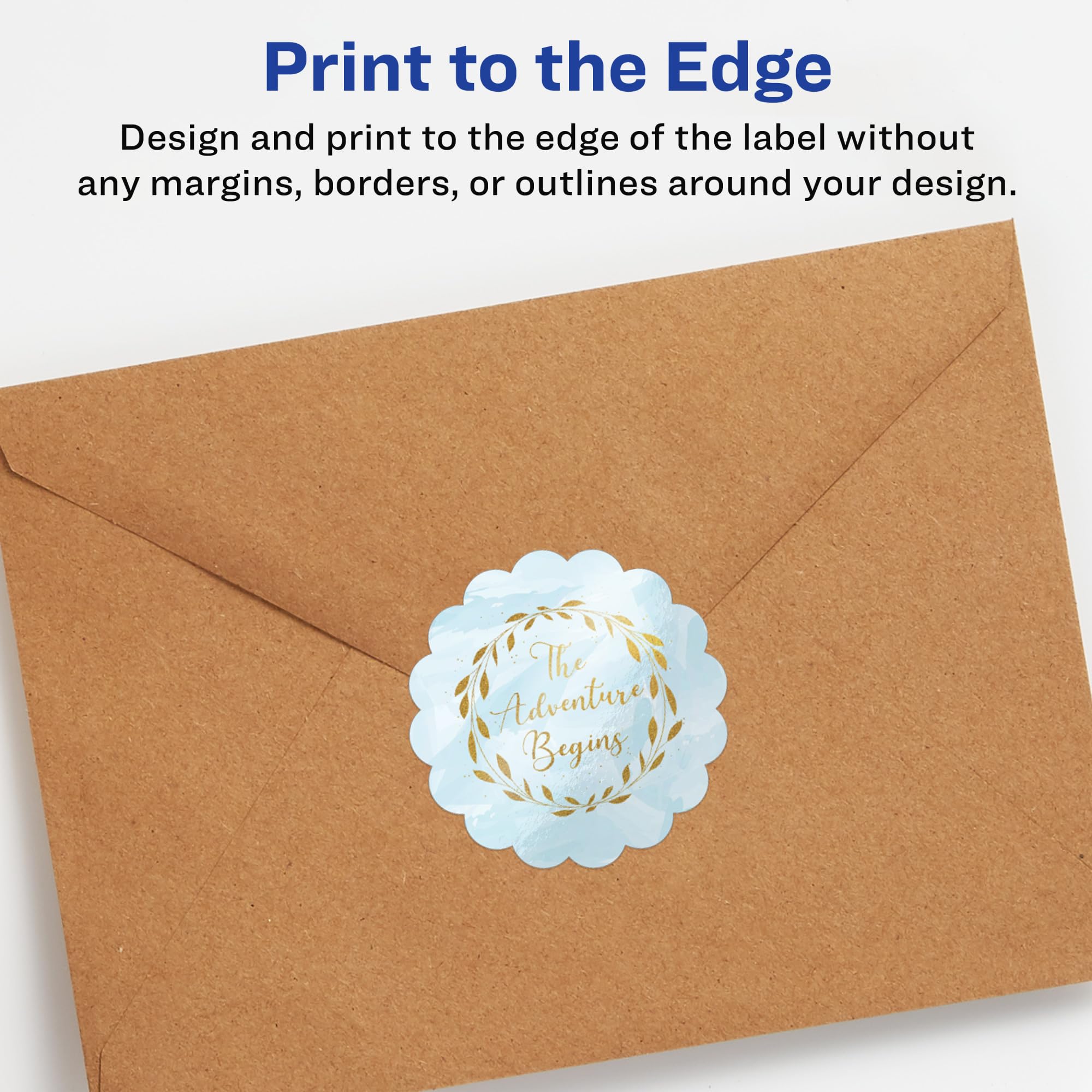 - Customize your own round scalloped labels with beautiful, full-bleed designs that fill the entire label with the print-to-the-edge design
