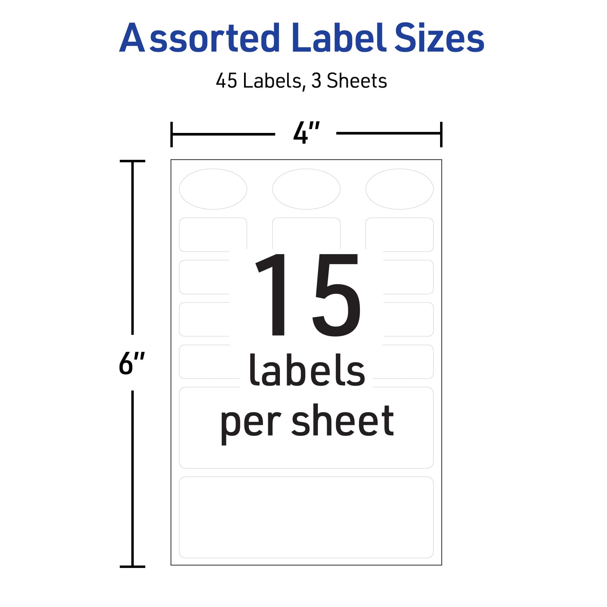 Avery No-Iron Fabric Labels, Assorted Shapes and Sizes, Washer and Dryer-Safe Waterproof Labels, Non-Printable, 45 Total (40700)