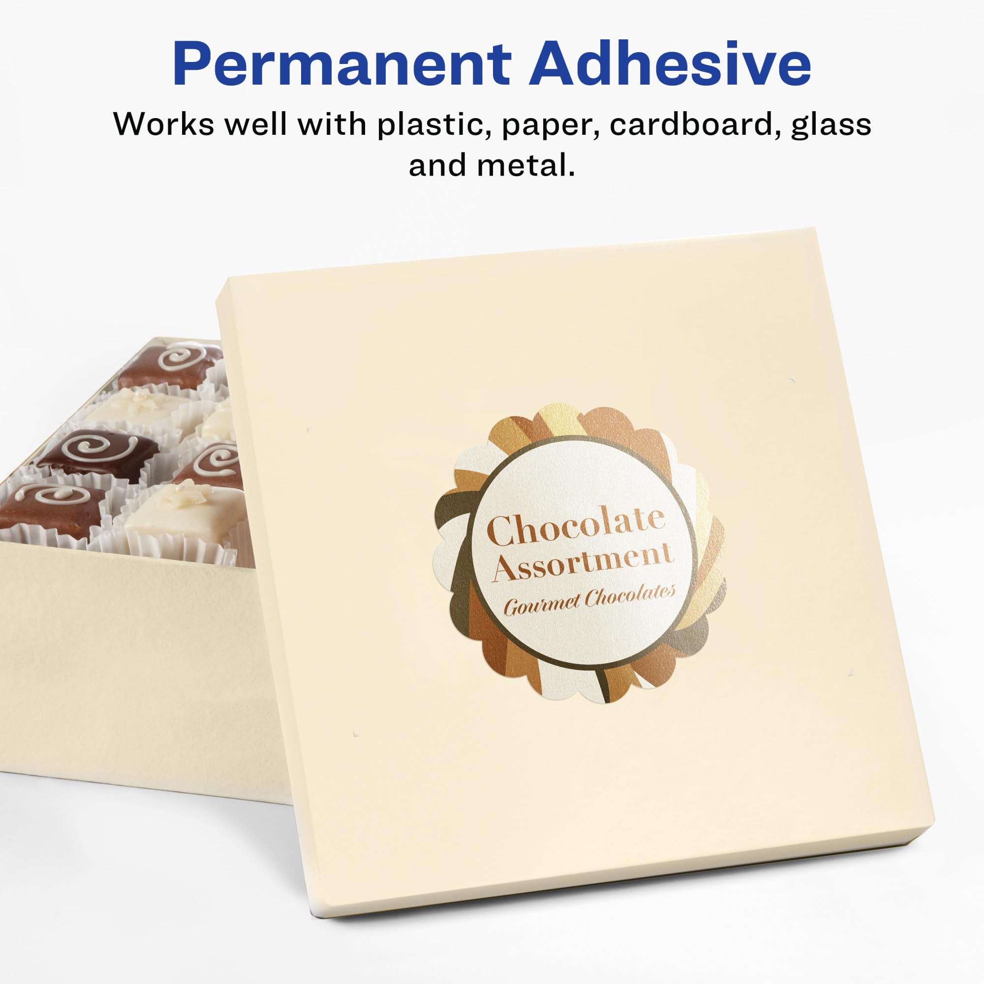 Avery Pearlized Ivory Round Scalloped Labels, Sure Feed Technology, Print-to-The-Edge, 2.5" Diameter, 225 Pearlized Ivory Labels, Laser/Inkjet Printable