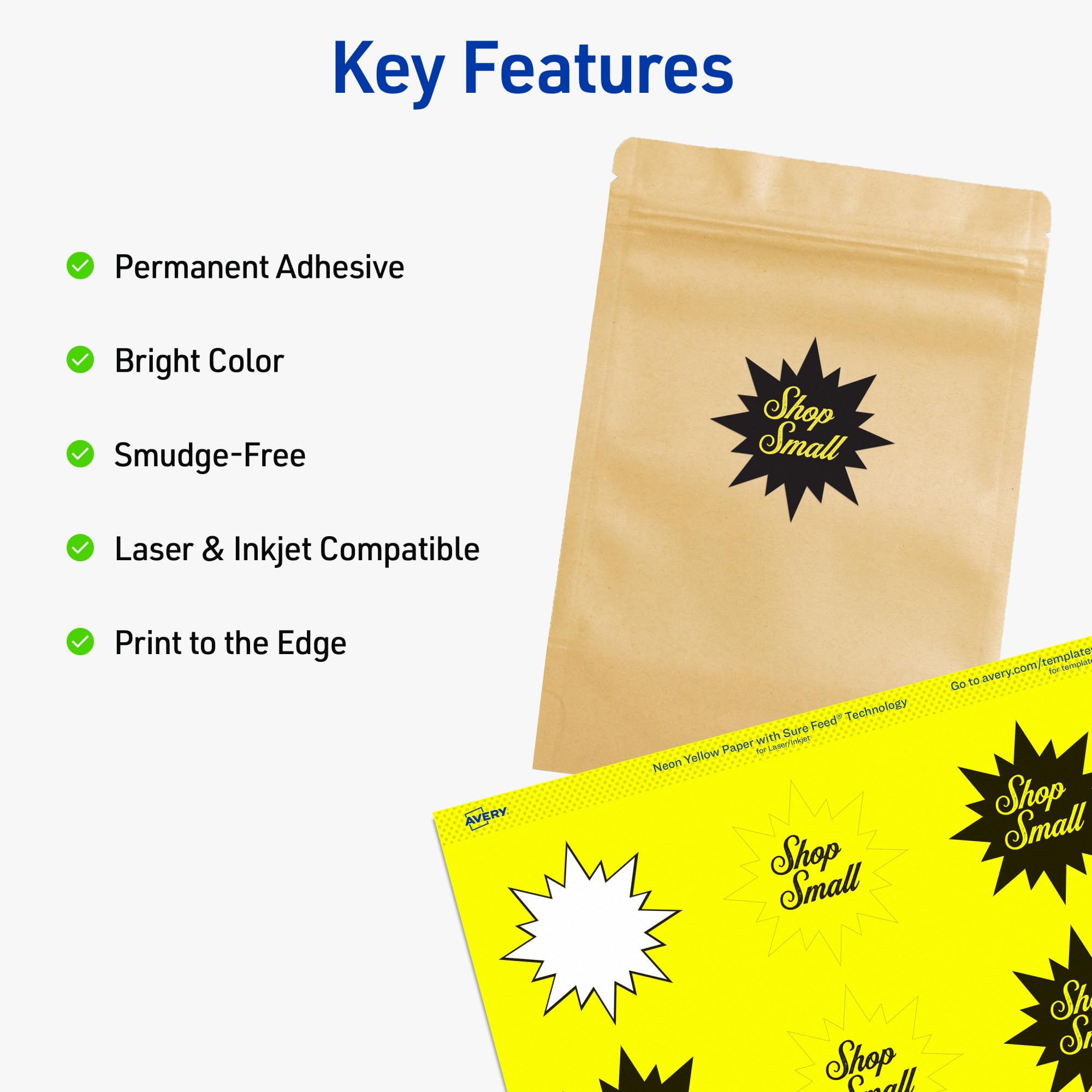 Avery Printable Burst ID Labels with Sure Feed, 2-1/4" Diameter, Assorted Neon Colors (Magenta, Green, and Yellow), Laser & Inkjet Compatible, 180 Blank Labels Total (5995)