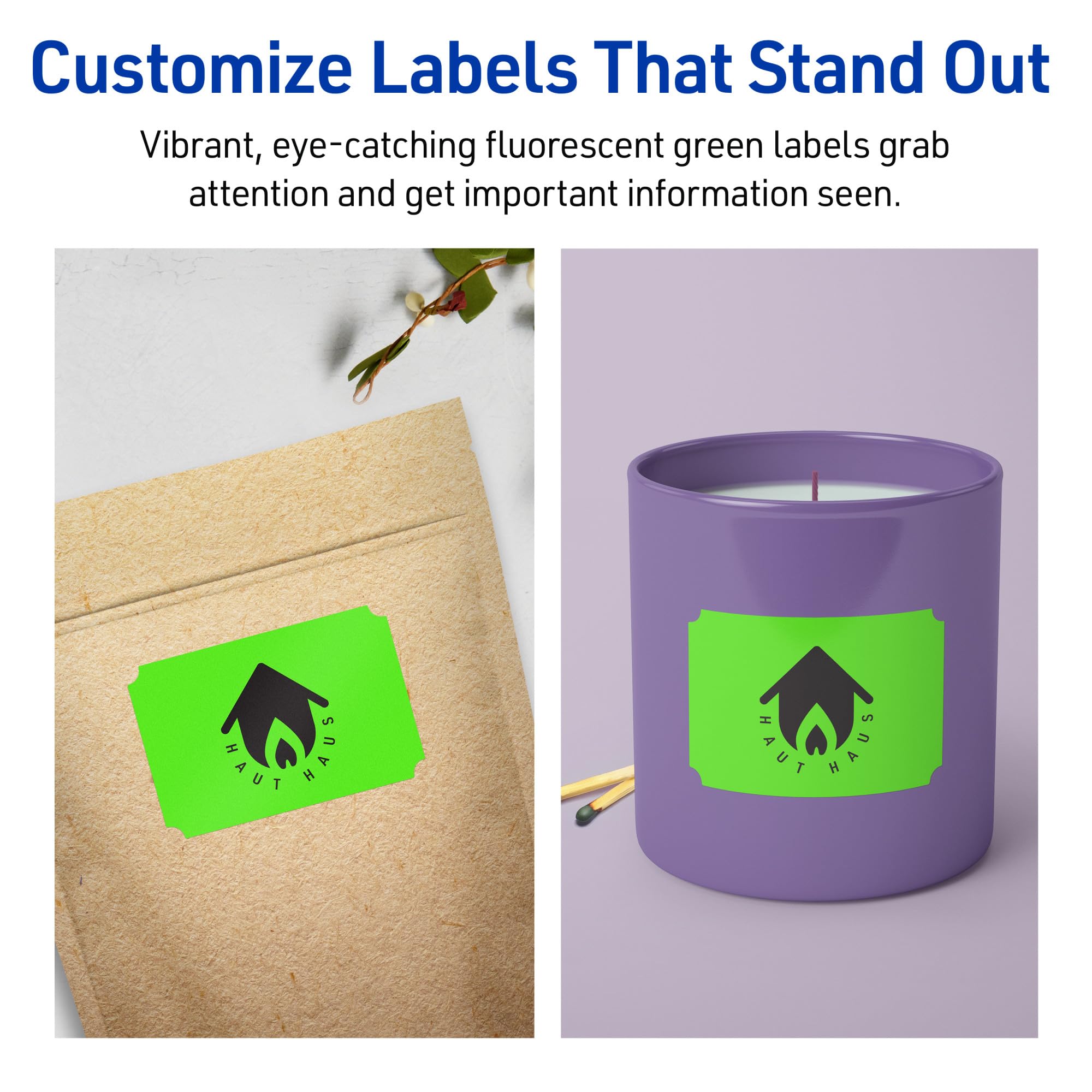Avery Printable Rectangle Scalloped Labels, Sure Feed Technology, 2" x 3", Neon Green Labels, Print-to-The-Edge, Laser/Inkjet Printable, 80 Total, Great for Mailing and Candles