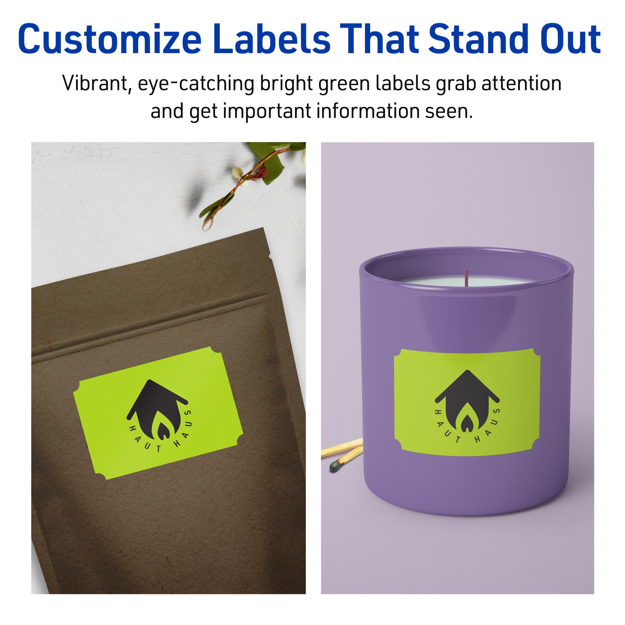 Avery Printable Rectangle Scalloped Labels, Sure Feed Technology, 2" x 3", Bright Green Labels, Print-to-The-Edge, Laser/Inkjet Printable, 80 Total, Great for Mailing and Candles