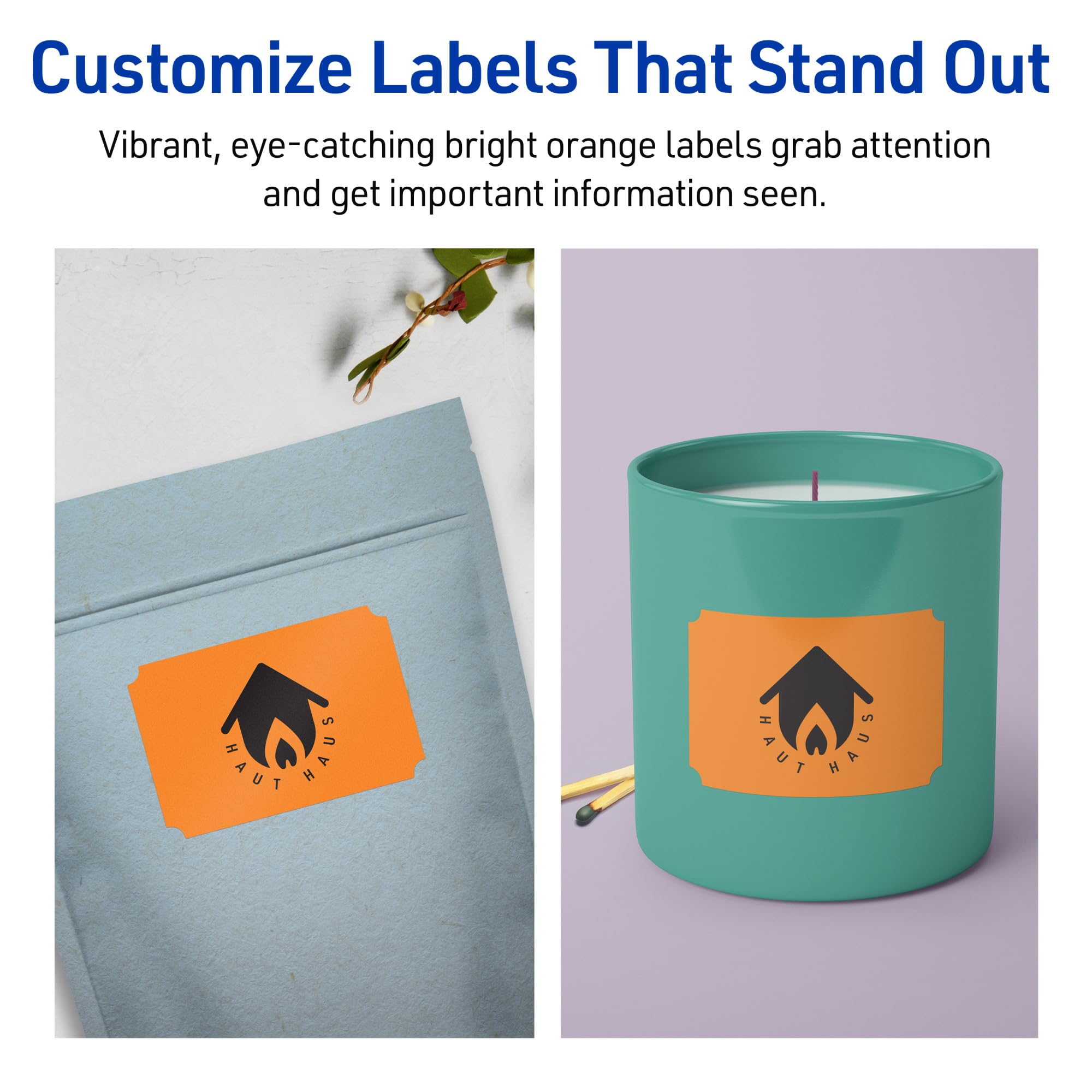 Avery Printable Rectangle Scalloped Labels, Sure Feed Technology, 2" x 3", Bright Orange Labels, Print-to-The-Edge, Laser/Inkjet Printable, 80 Total, Great for Mailing and Candles
