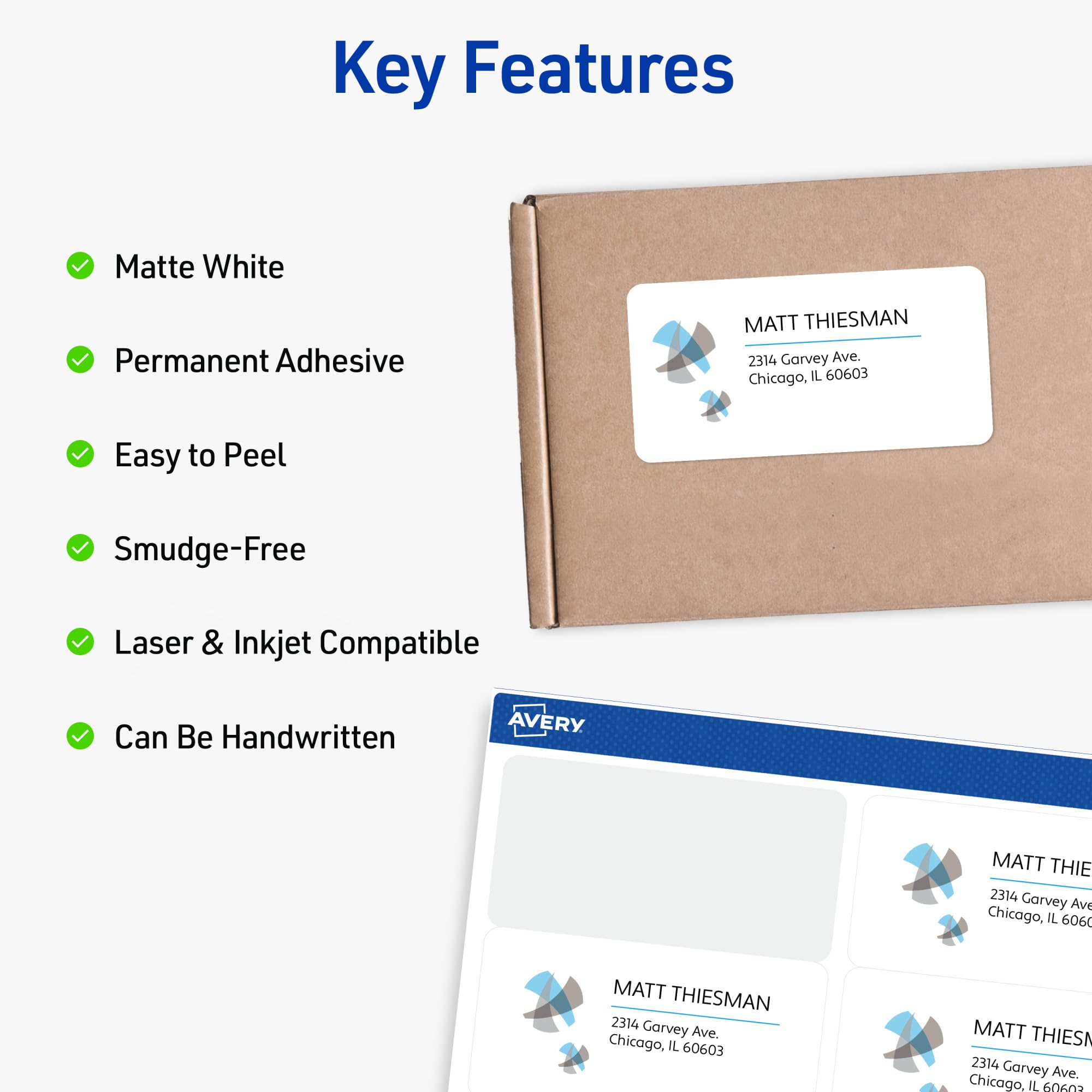 - Handwrite on labels for quick and easy personalization, or print clear text and crisp graphics with label paper optimized for laser and inkjet printers to help prevent smearing or smudging