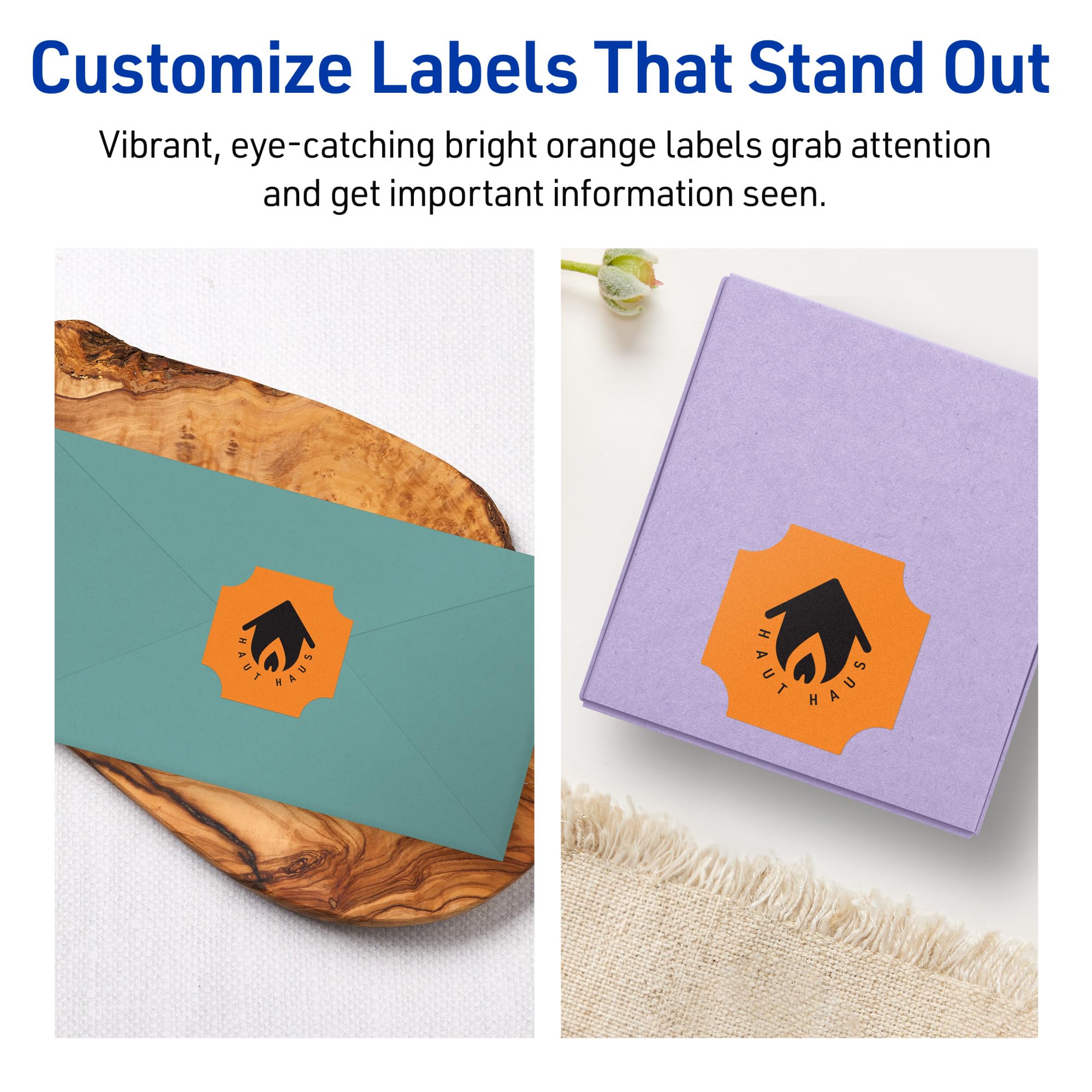 Avery Printable Square Scalloped Labels, Sure Feed Technology, 1-5/8" x 1-5/8", Bright Orange Labels, Print-to-The-Edge, Laser/Inkjet Printable, 200 Total, Great for Cosmetics and Jarsā