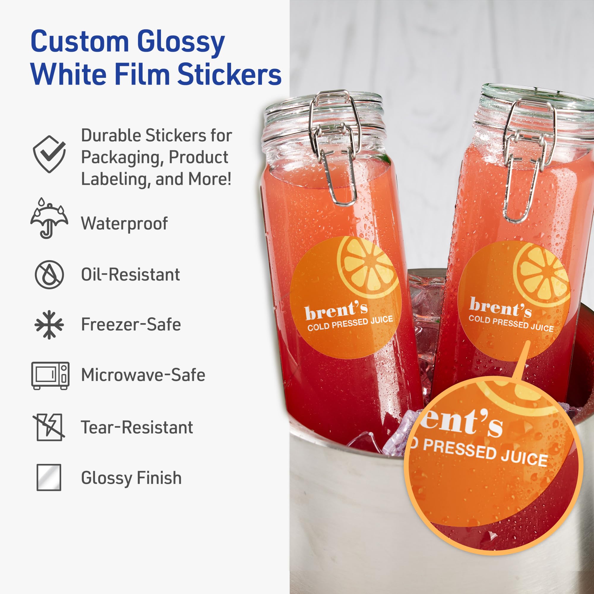 Avery Professionally Printed Custom Stickers, 2.5" Round Personalized Stickers, Waterproof, Glossy White Film, Design Your Own, Custom Decals, Great for Branding, Gifts, and More
